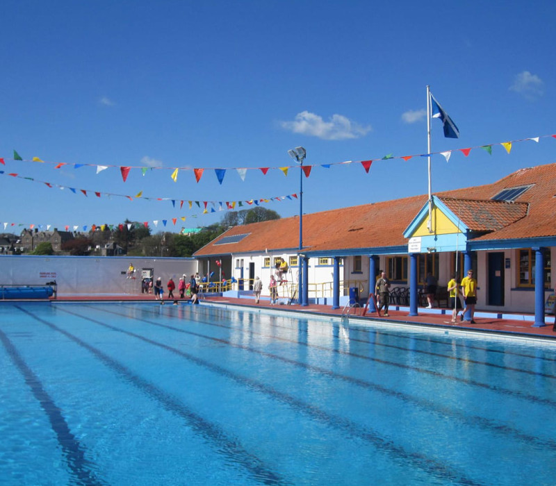 Opened in 1934, Stonehaven Open Air Pool is the UK's only art deco Olympic sized sea water lido. The water is heated and is open from late May to early September. Paddling pool, Splash Cafe and a new chute opened in 2021!