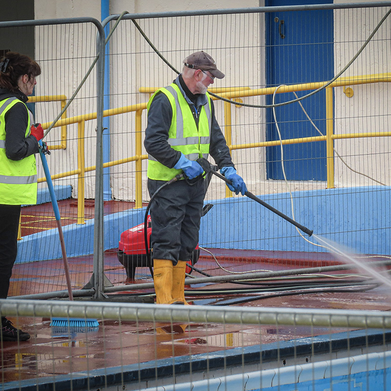 Work to maintain and enhance the Pool is carried out all year round. During the season, Friends help to maintain the gardens, host our live music and children's entertainers, welcome visitors to the pool and promote the sale of pool merchandise at our events. After the Pool closes they work with the Council to plan maintainance, helping to identify any major repairs and "put the Pool to bed", carrying out any repairs which can be done before winter. After New Year, the real push starts to get the Pool ready and looking its best for the May opening and volunteers are always needed to help with power washing, painting, pre-season cleaning and just about anything that needs doing.